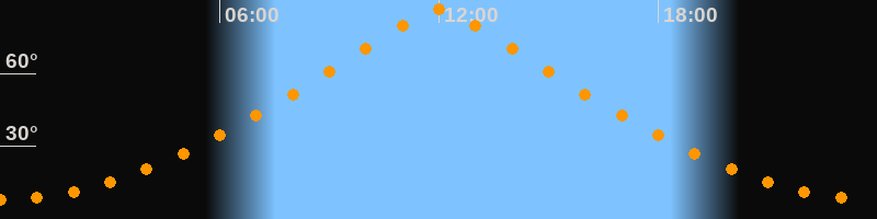 | Höchster Stand (Kulmination) | 12:00 Uhr (h = 86,6°) |