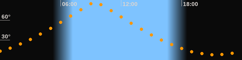 | Höchster Stand (Kulmination) | 09:25 Uhr (h = 86,6°) |