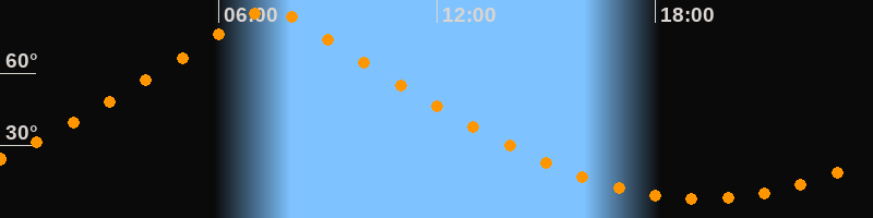 | Höchster Stand (Kulmination) | 07:23 Uhr (h = 86,6°) |