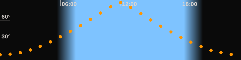 | Höchster Stand (Kulmination) | 11:57 Uhr (h = 86,6°) |