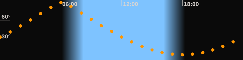 | Höchster Stand (Kulmination) | 06:02 Uhr (h = 86,6°) |