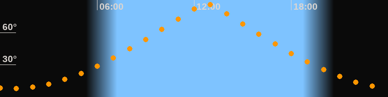| Höchster Stand (Kulmination) | 12:45 Uhr (h = 86,6°) |