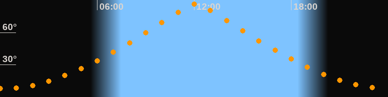 | Höchster Stand (Kulmination) | 12:05 Uhr (h = 86,6°) |
