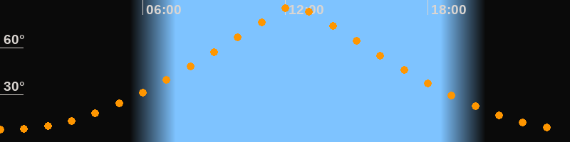 | Höchster Stand (Kulmination) | 12:22 Uhr (h = 86,6°) |