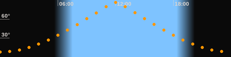 | Höchster Stand (Kulmination) | 12:00 Uhr (h = 86,6°) |