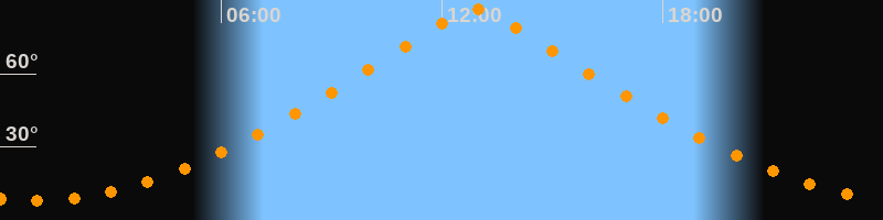 | Höchster Stand (Kulmination) | 12:54 Uhr (h = 86,6°) |
