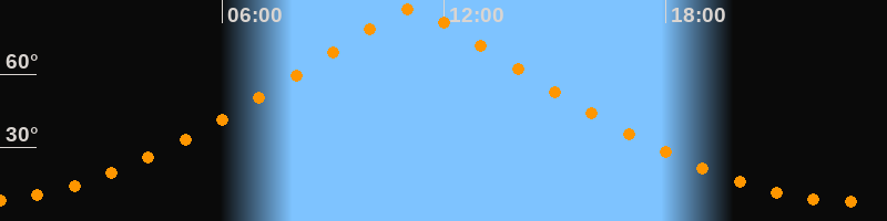 | Höchster Stand (Kulmination) | 11:08 Uhr (h = 86,6°) |