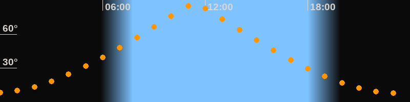 | Höchster Stand (Kulmination) | 11:21 Uhr (h = 86,6°) |