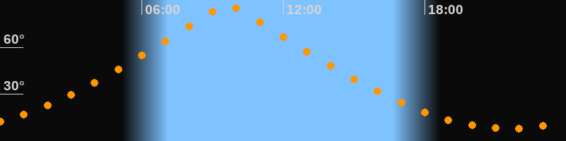 | Höchster Stand (Kulmination) | 09:38 Uhr (h = 86,6°) |