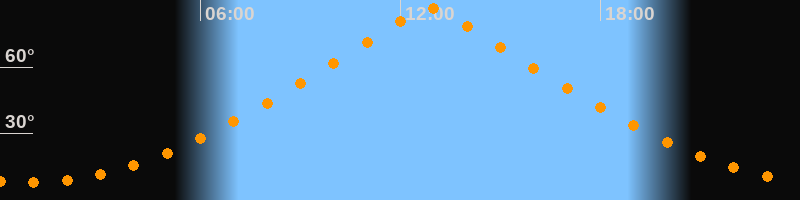 | Höchster Stand (Kulmination) | 12:52 Uhr (h = 86,6°) |
