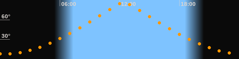| Höchster Stand (Kulmination) | 12:25 Uhr (h = 86,6°) |