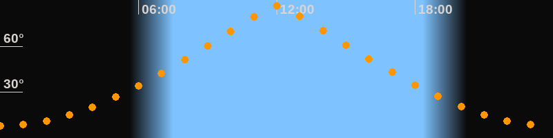 | Höchster Stand (Kulmination) | 12:01 Uhr (h = 86,6°) |