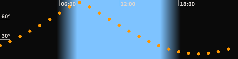 | Höchster Stand (Kulmination) | 08:00 Uhr (h = 86,6°) |