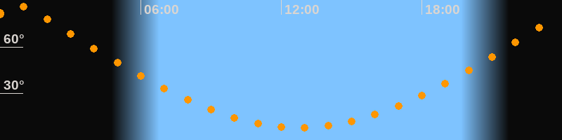 | Höchster Stand (Kulmination) | 00:45 Uhr (h = 86,6°) |