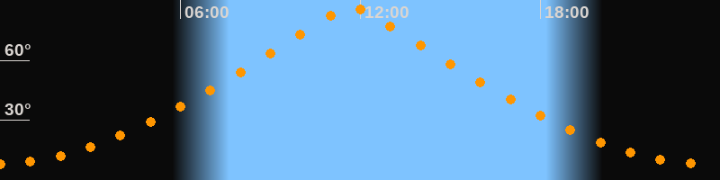 | Höchster Stand (Kulmination) | 11:43 Uhr (h = 86,6°) |