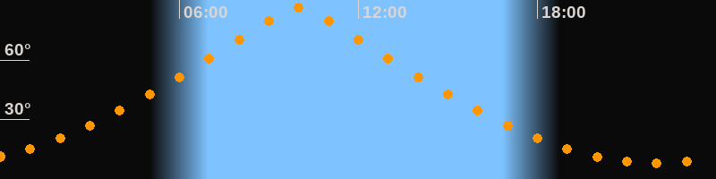 | Höchster Stand (Kulmination) | 09:59 Uhr (h = 86,6°) |