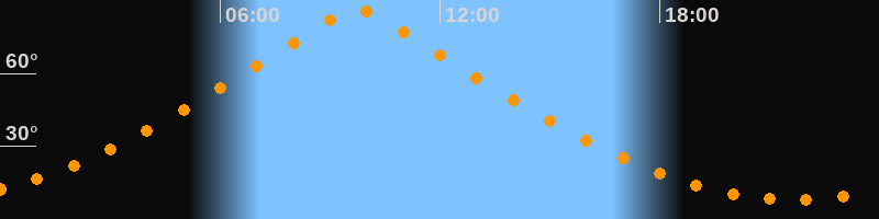 | Höchster Stand (Kulmination) | 09:44 Uhr (h = 86,6°) |