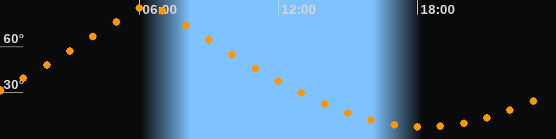 | Höchster Stand (Kulmination) | 06:23 Uhr (h = 86,6°) |