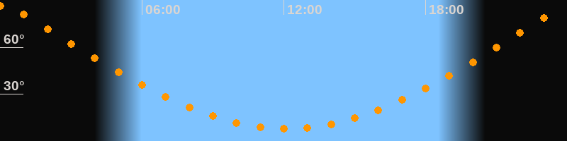 | Höchster Stand (Kulmination) | 00:06 Uhr (h = 86,6°) |