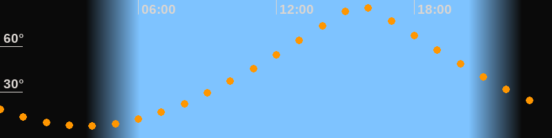 | Höchster Stand (Kulmination) | 15:39 Uhr (h = 86,6°) |