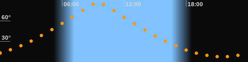 | Höchster Stand (Kulmination) | 09:29 Uhr (h = 86,6°) |