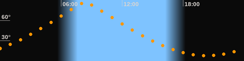 | Höchster Stand (Kulmination) | 08:22 Uhr (h = 86,6°) |