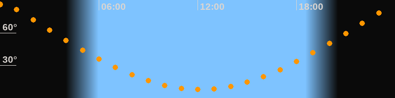 | Höchster Stand (Kulmination) | 00:07 Uhr (h = 86,6°) |