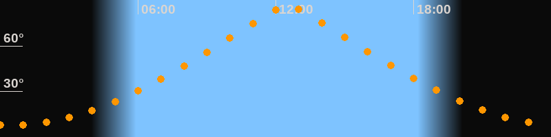 | Höchster Stand (Kulmination) | 12:31 Uhr (h = 86,6°) |