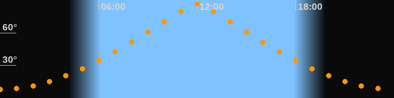 | Höchster Stand (Kulmination) | 11:59 Uhr (h = 86,6°) |
