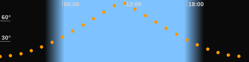 | Höchster Stand (Kulmination) | 11:43 Uhr (h = 86,6°) |