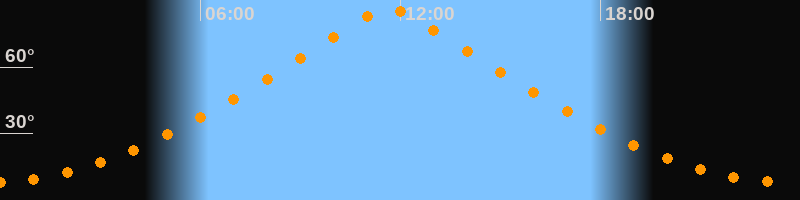 | Höchster Stand (Kulmination) | 11:40 Uhr (h = 86,6°) |