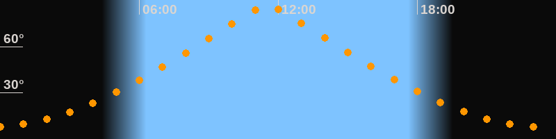 | Höchster Stand (Kulmination) | 11:32 Uhr (h = 86,6°) |