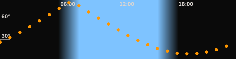 | Höchster Stand (Kulmination) | 07:12 Uhr (h = 86,6°) |