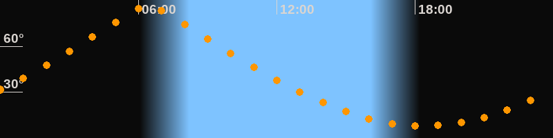 | Höchster Stand (Kulmination) | 06:25 Uhr (h = 86,6°) |
