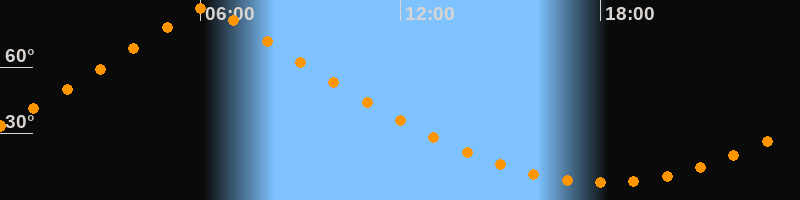 | Höchster Stand (Kulmination) | 06:09 Uhr (h = 86,6°) |