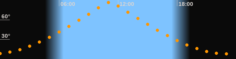 | Höchster Stand (Kulmination) | 11:09 Uhr (h = 86,6°) |