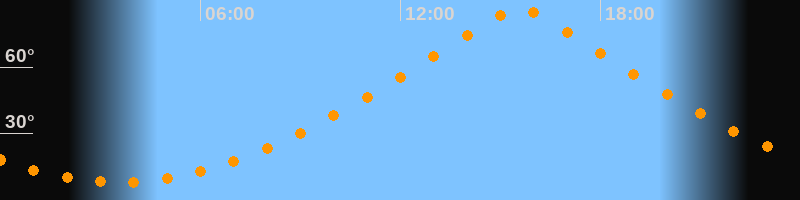 | Höchster Stand (Kulmination) | 15:33 Uhr (h = 86,6°) |