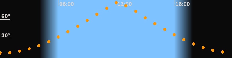 | Höchster Stand (Kulmination) | 12:13 Uhr (h = 86,6°) |
