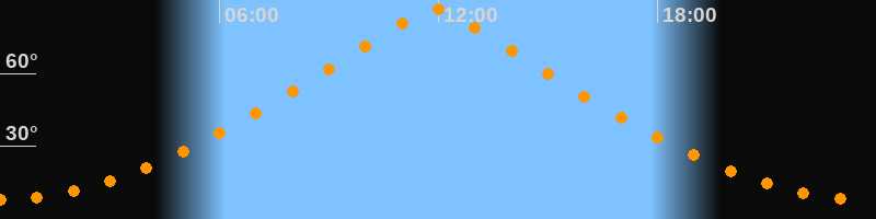 | Höchster Stand (Kulmination) | 11:53 Uhr (h = 86,6°) |