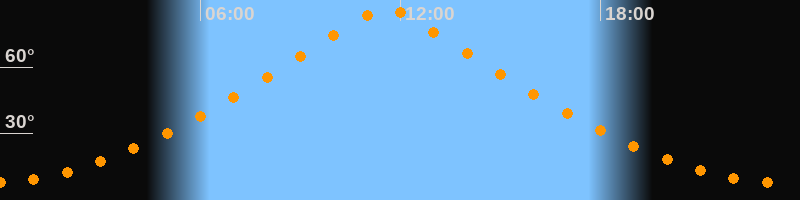 | Höchster Stand (Kulmination) | 11:35 Uhr (h = 86,6°) |