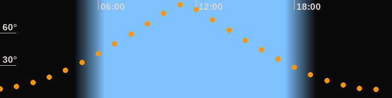 | Höchster Stand (Kulmination) | 11:11 Uhr (h = 86,6°) |