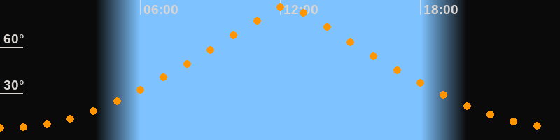 | Höchster Stand (Kulmination) | 12:16 Uhr (h = 86,6°) |