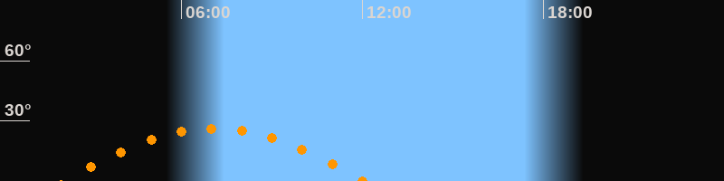| Höchster Stand (Kulmination) | 07:04 Uhr (h = 26,3°) |