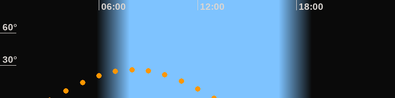 | Höchster Stand (Kulmination) | 08:05 Uhr (h = 26,3°) |