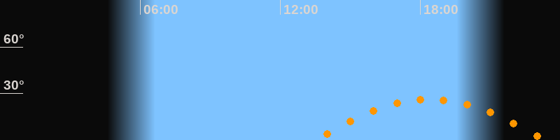 | Aufgang | 13:27 Uhr im Osten (αAz = 110°) |