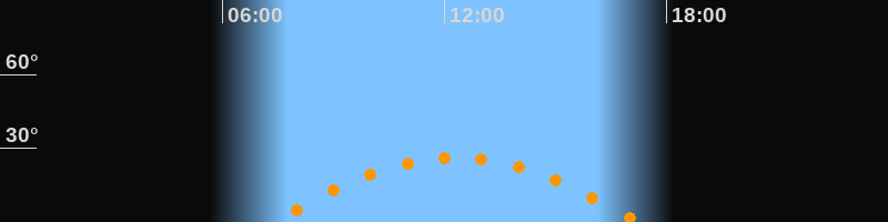 | Höchster Stand (Kulmination) | 12:18 Uhr (h = 26,3°) |