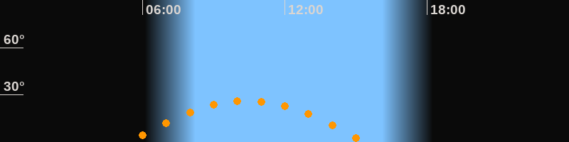 | Höchster Stand (Kulmination) | 10:24 Uhr (h = 26,3°) |