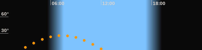 | Höchster Stand (Kulmination) | 07:21 Uhr (h = 26,3°) |