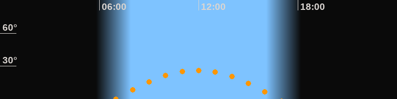 | Höchster Stand (Kulmination) | 11:54 Uhr (h = 26,3°) |