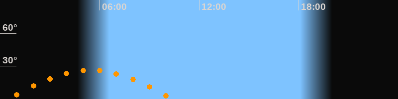 | Untergang | 10:24 Uhr im Westen (αAz = 250°) |
